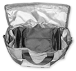 Comes with large duel zippered body opening, two large outside pockets, sturdy handles.